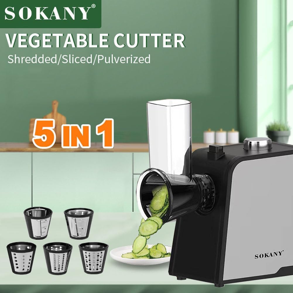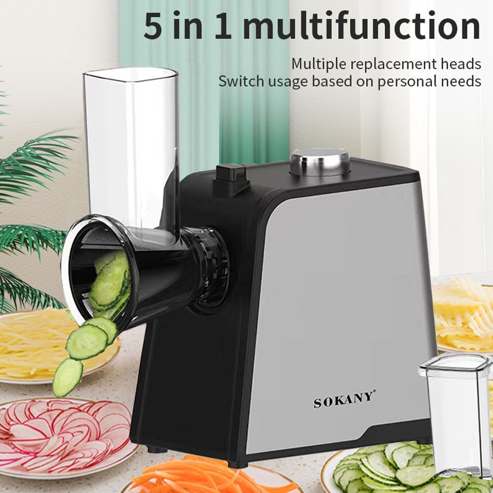 - [6 in 1 Multi-function Electric Grater] The electric slicing cutting machine is equipped with 5 interchangeable stainless steel blades (which are coarse grater cone, fine grater cone, thick disc cone, thin disc cone, grinding cone) can meet your different cooking needs.