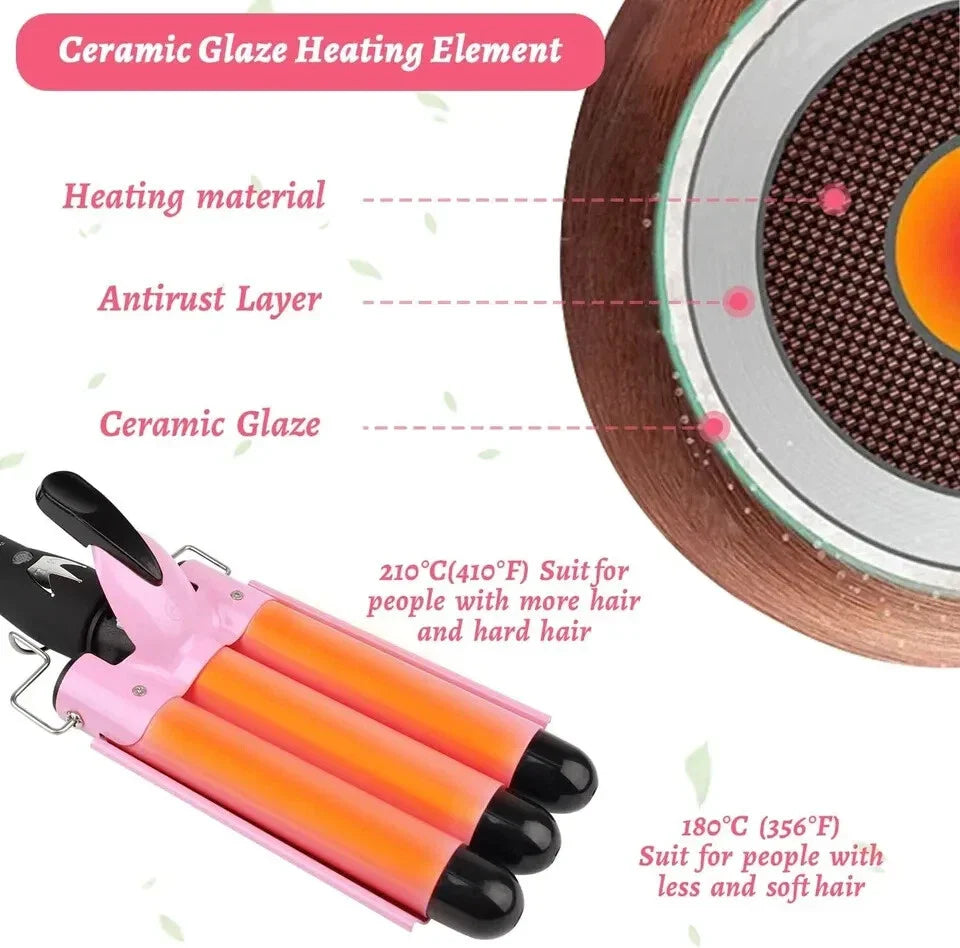 3 Barrels Hair Curler - 25Mm Curling Iron Tongs Mermaid Waves-PINK