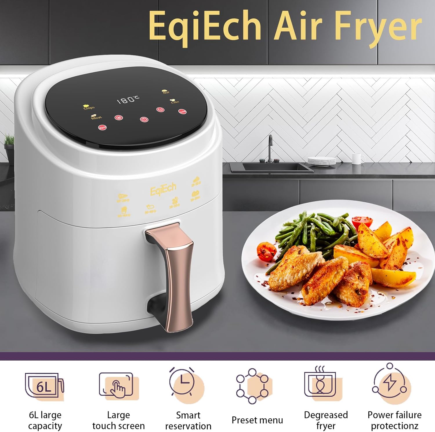 - 【Spacious 6 Litre Capacity】 The 6 litre capacity of this air fryer is perfect for families or gatherings and can easily cater for multiple people. Say goodbye to batch cooking and enjoy faster meal preparation, so your food is always at its best and ready for any occasion with ease.