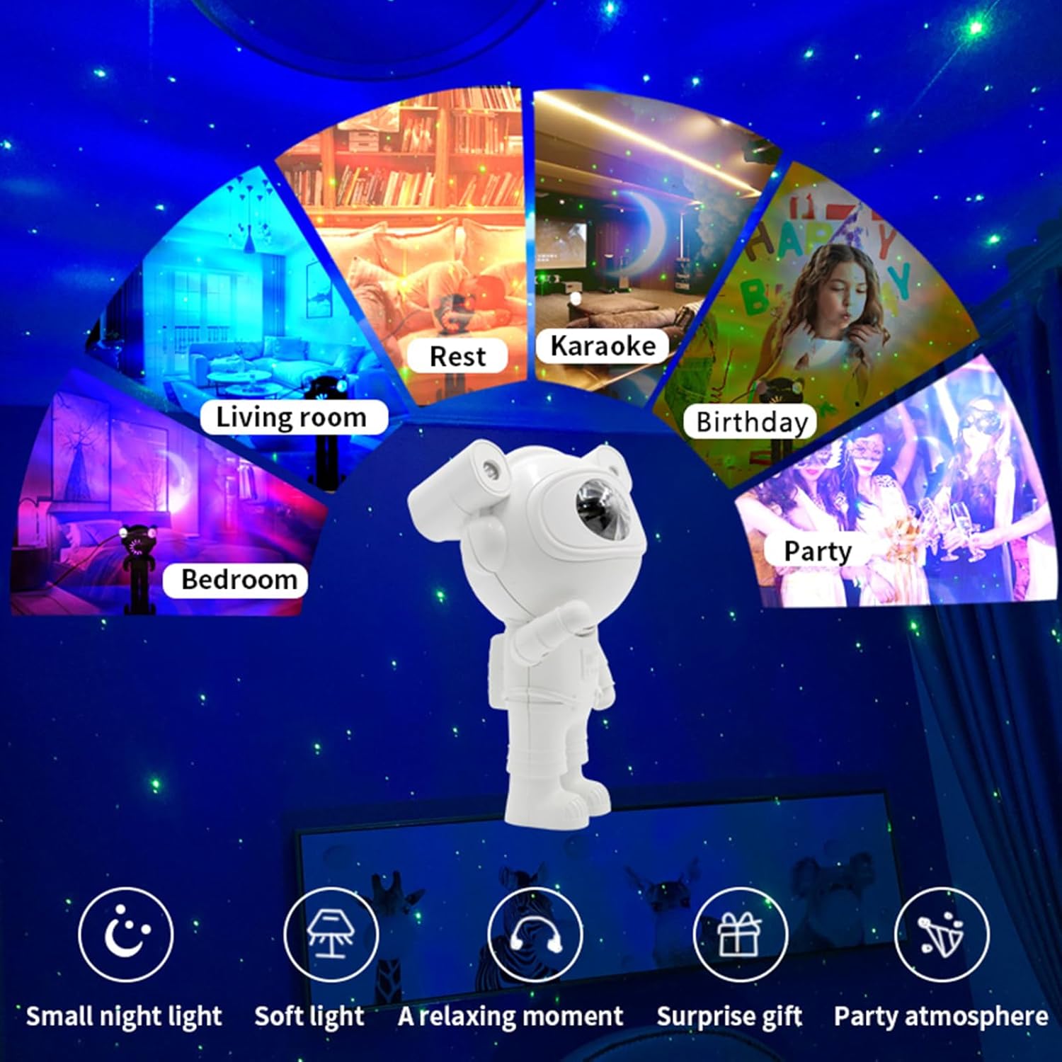 - Astronaut Galaxy star projector: Use the remote control to operate the star projector. DIY astronaut projector offers a variety of light modes to choose from. The galaxy projector blends nebulae and the moon to make you feel like an astronaut traveling through the vastness of the Milky Way.