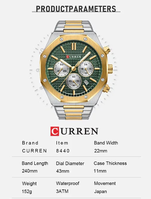 CURREN Original Brand Stainless Steel Band Wrist Watch For Men With Brand