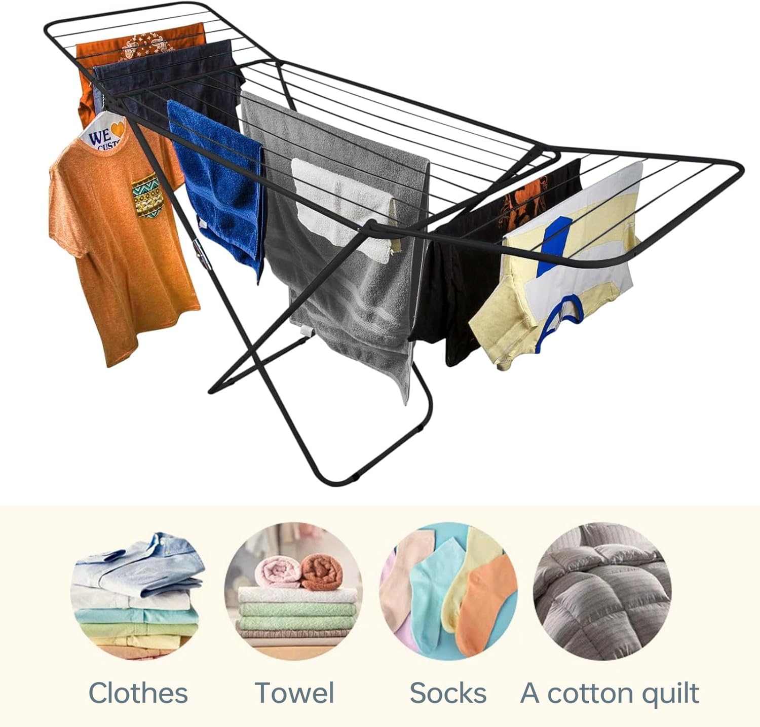 - ☀️LARGE DRYING SPACE: this drying rack offers you plenty of space to dry your clothes, towels, blankets, toys, socks and underwear, perfect for those who want to do laundry and dry a lot of clothes at the same time.