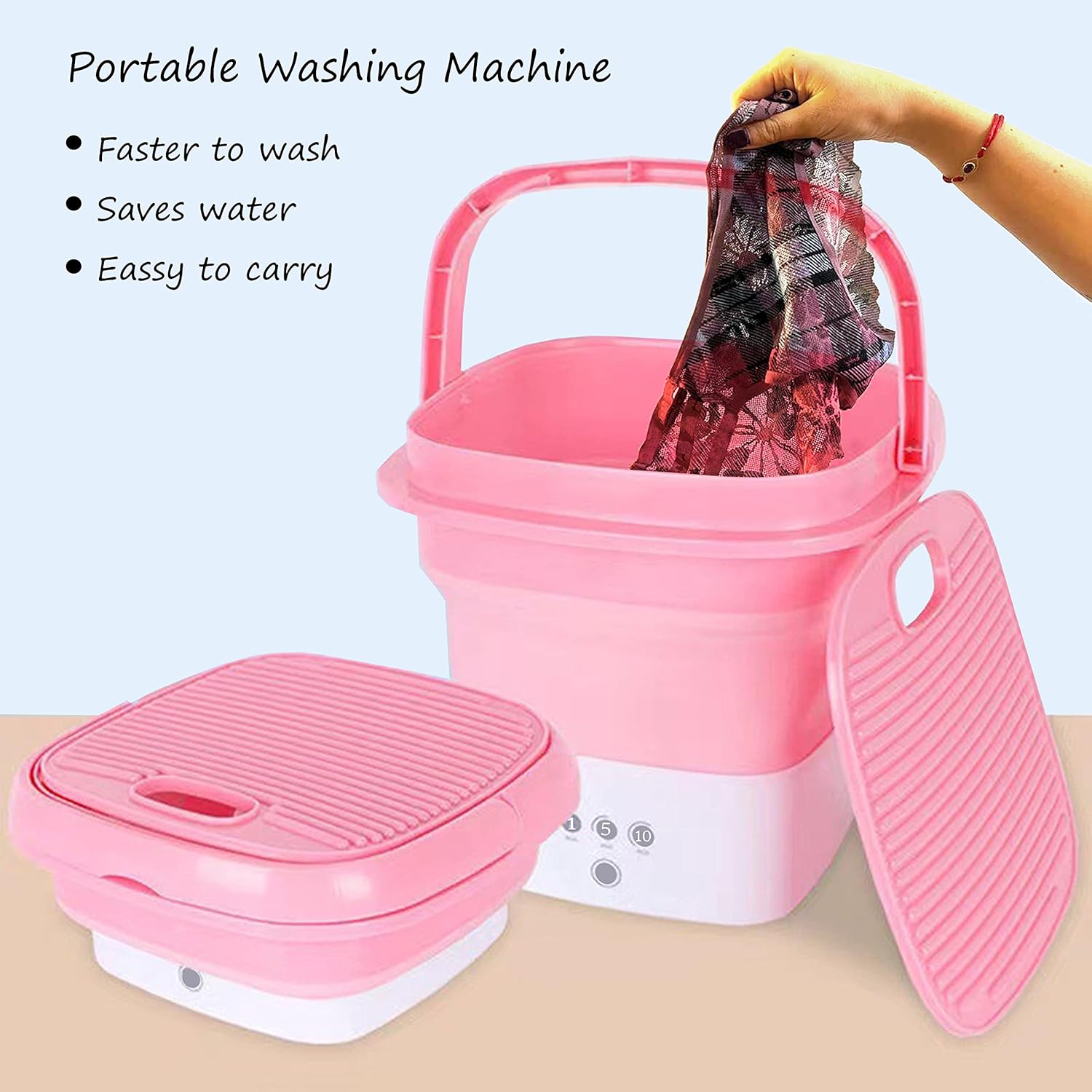 Mini Portable Washing Machine for Travelling, Camping, Apartment, Dorm - Pure Clean Lightweight Collapsible Bucket Baby Clothes, Underwear or Small Items, Foldable Gift (Pink)