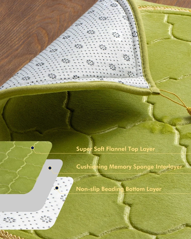 - Experience supreme comfort with our Muslim prayer rug, thicker and softer than most others in the marketplace, featuring cotton padding for soothing prayer sessions