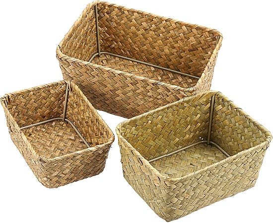 - Handcrafted & Durable- These trendy baskets are made of natural seagrass with iron wire frame, provides durable quality for your shelves cupboards desk. Effortlessly double as decorative pieces and store your odds and ends.