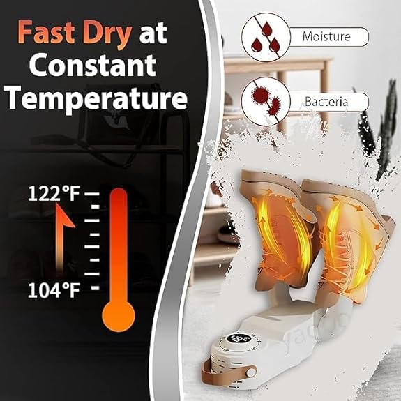 - 【360° hot air circulation】Three-dimensional 360° hot air that forms a hot air environment that swings the hot air into the shoes and removes water vapour. There are 356 distributed openings and 10 large air channels on the fence to form a warm air flow in the shoes. Even the dead corners of the shoes can be dried.
